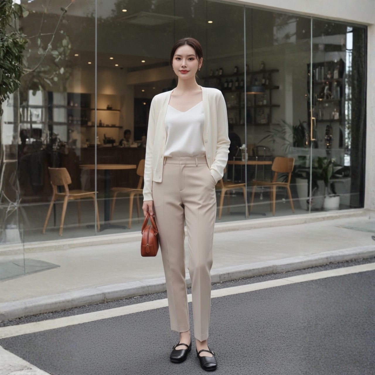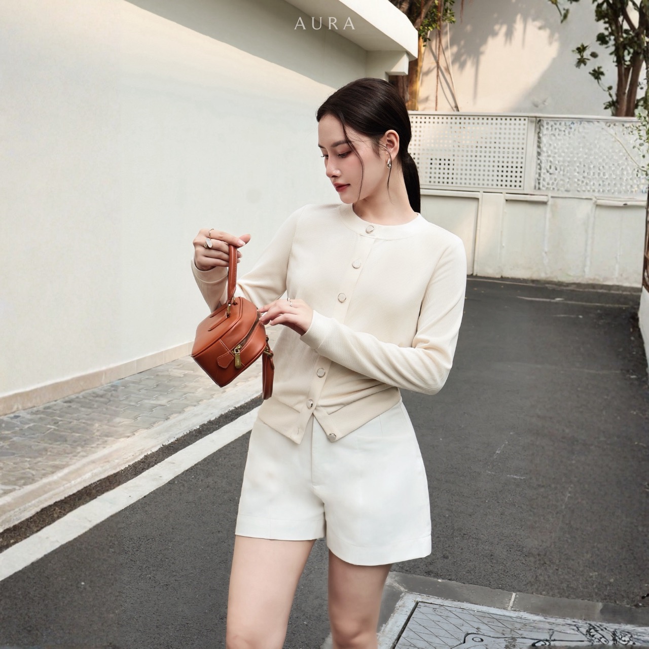 Áo Cardigan Dài Tay Nữ Màu Kem AURA – Chất Ticken Len Cao Cấp, Dệt Gân, Đứng Form Thanh Lịch – AURA