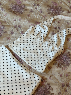 Sự kết hợp giữa chấm bi cổ điển và chất liệu satin mờ cao cấp mang lại vẻ sang trọng, nhẹ nhàng nhưng vẫn đầy sức hút.